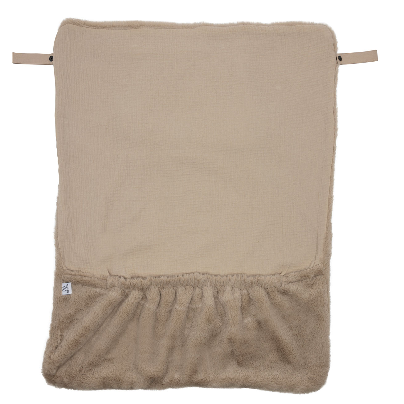 Merveilleusement douce, cette couverture très stylée va garder bébé bien au chaud durant toutes ses balades hivernales. Grâce à ses languettes sur les côtés, elle se fixe aisément sur la poussette ou sur le porte-bébé pour éviter que bébé ne se découvre. Très stylée, elle est composée d’une face en fausse fourrure angora, et d’une face en gaze de coton. Une poche kangourou sur le devant permet de garder les mains de bébé (ou de maman !) bien au chaud. Rabat élastiqué au verso pour garder les pieds au chaud.