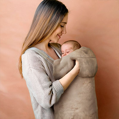 Merveilleusement douce, cette couverture très stylée va garder bébé bien au chaud durant toutes ses balades hivernales. Grâce à ses languettes sur les côtés, elle se fixe aisément sur la poussette ou sur le porte-bébé pour éviter que bébé ne se découvre. Très stylée, elle est composée d’une face en fausse fourrure angora, et d’une face en gaze de coton. Une poche kangourou sur le devant permet de garder les mains de bébé (ou de maman !) bien au chaud. Rabat élastiqué au verso pour garder les pieds au chaud.